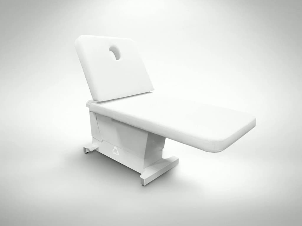 Кушетка оснащена двумя электроприводами, регулирующими высоту кресла и спинку.